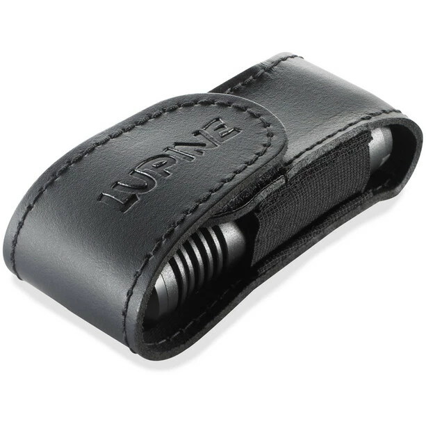 The hand-sewn holster made of high-quality leather is attached to the belt (max. 45 mm width) with a leather strap. The belt holster can be closed by vercro and fits tightly, comparable to a revolver holster and ensures a secure fit of the lamp. Thanks to a leather thickness of 3 to 3,5 mm, the holster retains its shape well and thus also enables the lamp to be quickly put back.