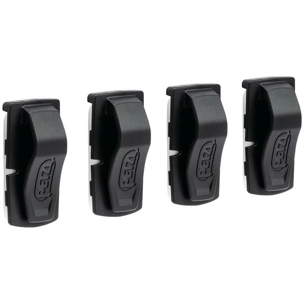 Four adhesive clips for mounting a Petzl headlamp on helmets that do not have clips.