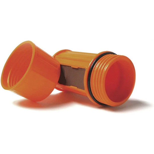 Slightly larger, waterproof storage box for matches. Fitted on the outside with a striking surface (2 more for replacement are included). With seal. Please note: Don’t carry the striking surfaces together with matches in a box – risk of fire! Without Matches.